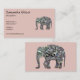 Sparkly silver mosaic Elephant Monogram rose pink Business Card