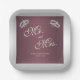 Sparkly Silver Rings & Burgandy Wedding Paper Plate