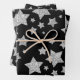Sparkly Silver Stars Christmas pattern on black Wrapping Paper Sheets. Cool, elegant and unique X-mas Christmas Winter New Year festive gift wrap for her. Beautiful silver grey glitter sparkles stars pattern on customisable Black. Photo of sparkles glitter!