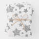 Sparkly Silver Stars Christmas pattern on white Wrapping Paper Sheets. Cool, elegant and unique X-mas Christmas Winter New Year festive gift wrap for her. Beautiful silver grey glitter sparkles stars pattern on customisable white. Photo of sparkles glitter!