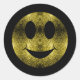 Sparkly Smile face Yellow Gold sparkles on Black Classic Round Sticker
