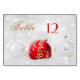 Table number card featuring festive Christmas baubles with sparkling light snow in silver white and red colours. The "Table" text is a stylised image and can be deleted if you prefer custom or no text. An elegant card to add style to your Christmas dinner tables and help your guests find the table you have reserved for them.