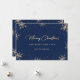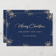 Sparkly blue and gold Christmas cards with a modern font type and featuring snowflakes and falling snow on a blue background. Easily personalise these blue and gold snowflake Christmas cards with your family name and a message.