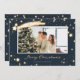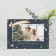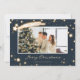 Custom blue photo Christmas cards featuring stars on a plain blue background. Easily personalise these starry photo Christmas cards with your image, family name and text.