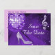 Elegant, glamourous 50th Birthday / Fiftieth Birthday save the date postcards. Trendy glitz and glamour Save the dates for your 50th / Fiftieth birthday party celebrations. Beautiful, dazzling purple/lilac/Lavender sparkles diamonds bling jewels musical note image, funky purple/lilac/lavender retro disco mirror ball and purple/lilac/lavender glittery stiletto high heel fashion shoe image on a chic lilac background. A cute, classy, fashionable, stylish, pretty save the date postcard for women's birthday parties. Women will love this cool, fun, funky, girly design for their glamourous music and dancing parties. If you need any assistance in customising your product please contact me through my store and i will be very happy to help.