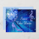 Elegant, glamourous 50th Birthday / Fiftieth Birthday save the date postcards. Trendy glitz and glamour Save the dates for your 50th / Fiftieth birthday party celebrations. Beautiful, dazzling blue and silver sparkles diamonds bling jewels musical note image, funky blue retro disco mirror ball and blue and silver glittery stiletto high heel fashion shoe image on a chic blue background. A cute, classy, fashionable, stylish, pretty save the date postcard for women's birthday parties. Women will love this cool, fun, funky, girly design for their glamourous music and dancing parties. If you need any assistance in customising your product please contact me through my store and i will be very happy to help.