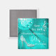 Elegant, glamourous 50th Birthday / Fiftieth Birthday save the date magnets. Trendy glitz and glamour Save the dates for your 50th / Fiftieth birthday party celebrations. Beautiful, dazzling silver sparkles diamonds bling jewels musical note image, funky teal blue/turquoise retro disco mirror ball and silver glittery stiletto high heel fashion shoe image on a chic teal blue/turquoise background. A cute, classy, fashionable, stylish, pretty save the date magnet for women. Women will love this cool, fun, funky, girly design for their glamourous music and dancing 50th/Fiftieth parties.
