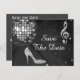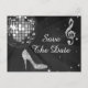 Elegant, glamourous 60th Birthday / Sixtieth Birthday save the date postcards. Trendy glitz and glamour Save the dates for your 60th/ Sixty birthday party celebrations. Beautiful, dazzling silver sparkles diamonds bling jewels musical note image, funky silver retro disco mirror ball and silver glittery stiletto high heel fashion shoe image on a chic black background. A cute, classy, fashionable, stylish, pretty save the date postcard for women's birthday parties. Women will love this cool, fun, funky, girly design for their glamourous music and dancing parties. If you need any assistance in customising your product please contact me through my store and i will be very happy to help.
