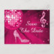 Elegant, glamourous 70th Birthday / Seventieth Birthday save the date postcards. Trendy glitz and glamour Save the dates for your 70th / Seventy birthday party celebrations. Beautiful, dazzling hot pink and silver sparkles diamonds bling jewels musical note image, funky pink retro disco mirror ball and hot pink and silver glittery stiletto high heel fashion shoe image on a chic pink background. A cute, classy, fashionable, stylish, pretty save the date postcard for women's birthday parties. Women will love this cool, fun, funky, girly design for their glamourous music and dancing parties. If you need any assistance in customising your product please contact me through my store and i will be very happy to help.