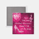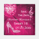 Elegant, glamourous sweet 16 / Sweet Sixteen save the date magnets. Trendy glitz and glamour Save the dates for your Sweet 16 birthday party celebrations. Beautiful, dazzling silver sparkles diamonds bling jewels musical note image, funky hot pink retro disco mirror ball and silver glittery stiletto high heel fashion shoe image on a chic hot pink background. A cute, classy, fashionable, stylish, pretty save the date magnet for teenage girls. Girl teens will love this cool, fun, funky, girly design for their glamourous music and dancing Sweet 16 parties.