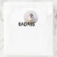 Photo of a small but rather aggressively looking at you sparrow and a text Badass. This is really a troublemaker. Funny sticker for anyone