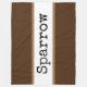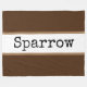 This happy feathered friend design features "Sparrow" written in large sweet typography inside a white wide centre stripe highlighted with light brown pinstripes. The background stripes colour is soft brown. Make It Your Own: Both the centre stripe colour and the background colour of this design can be customised/changed by editing the design. The text can also be personalised.