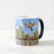 Enjoy your morning cup of coffee or tea with this morphing mug depicting a watercolor flying sparrow.