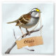 White-throated sparrow (Zonotrichia albicollis) in the snow. Small wooden board. Customise name. Ideal for gift giving.