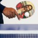 Overall, it's a nice product but for what you pay the quality isn't very good. The way it's glued together, as you can see in the pictures, is messy, the glue is visible and shiny, there's some ink staining that looks like black fluff but isn't, it won't come off. On the paddle's black surface there are also little white marks here and there. It's not too easy to show in the pictures because of the flash but I tried to showcase the little white blemishes that ruin a smooth black surface. This was meant to be a gift and it just looks sloppily put together unfortunately. A few imperfections that mar what could have been really great. The printing was neat.