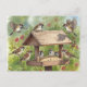 Sparrows bird feeder watercolor painting Postcard for Postcrossing