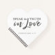 Encourage yourself stay truthful and positive with a heart-shaped notebook that reads, "Speak the truth in love" which comes from the full Bible Verse from Ephesians 4:15 that reads, "But speaking the truth in love, may grow up into him in all things, which is the head, even Christ." (KJV)