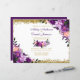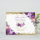 Watercolor Purple Ultra Violet Floral Gold Glitter Wedding Invitation Card - Purple Script - Purple Back
