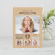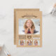 A 4-photo invitation perfect for any age or gender. The tan background features a ribbon banner for the name and a heart. The back of the card has a lovely two-tone abstract pattern.