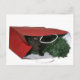 Black smoke kitty inside a red Christmas bag photo card. The cat could be someone's Christmas gift or just into someone's Christmas gift photo Christmas postcard
