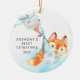 Adorable Baby's 1st Christmas ornament featuring a stork with a baby boy fox bundle. Room on the back of the ornament to add your baby photo.