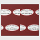 Special delivery from the north pole fun gift wrap, black and white typography tiled effect inside a red bordered oval on a dark red coloured background.
