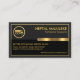Overleaf, in a black cover, the gold logo is at the top. This is followed by your prestigious name, the contact details and a slogan option. All lettering are in faux gold.
