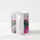 Give your grandma a morning with a tea or coffee mug adorned with a photo of pink flowers and a special message. These beautiful small blooms are accompanied by buds and green foliage. "Grandma Makes The World More Beautiful" appears against a banner around the top of the mug. Easily personalise if you desire.