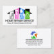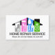 Each tool represents some of the service that you might offer e.g. The hammer-measuring tape can represent remodeling works, the roller brush-ladder for painting, the water drop-wrench for plumbing works and the bulb for electrical service. Below all this is the business name "HOME REPAIR SERVICE" and the contact details.