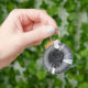 This is a designed keyring with metal body and khanda printed on it showing the sign of sikhism