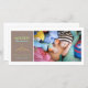 Introduce your little one to the world with this beautiful modern birth announcement by katkadoodle.com. Lovely typography in playful colours of lime green, turquoise blue and tangerine orange set against a suede brown background, all on white card stock. Simply elegant styling features a portrait photo of your sweet baby girl.