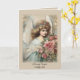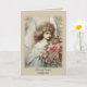 Celebrate special moments with this vintage-style angel greeting card, featuring a serene angel adorned with a red and green wreath, a flowing blue robe, and a background of delicate rows of flowers. Her timeless beauty evokes peace and grace, making this card perfect for any occasion. The front is fully customisable to display messages like “Happy Birthday,” “Thinking Of You,” or a personalised caption of your choice. The inside is also customisable, allowing you to add your heartfelt words for a truly unique touch.