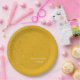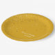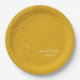 Shown is this golden petite stars printed paper plate in a custom Mellow Yellow colour. Stars are not actual gold metallic or gold foiled, simply a gold-like colour. Stars angled on 3/4 of the plate. Personalised names to customise to your own name or phrase. Create your own colour using the custom colour option.
