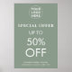 Highlight your promotion with our sage green poster. Ideal for announcing special offers and final sales, it grabs attention and promotes your event or sale effectively.