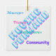 at christmass as a hanging decration for the chritmass tree.. its white porcline or cramic but very well made with added photo on one side.. also has a lovley red bag to keep it in.. execlent printed text in bold and black stands out well aganst the blue background of the photo.
