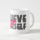 Some days, a regular size cup of joe just won’t do. When you need that extra jolt of caffeine, reach for your extra-large coffee mug from Zazzle. It will accommodate a full 20-ounce Venti pour. Perfect for soup, cereal, ice cream, or chilli too! This giant mug features a C-shaped handle for comfortable sipping.