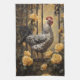 Speckled Hen with Yellow Roses Oil Painting Tea Towel
