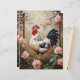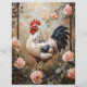 Speckled Rooster Among Pink Roses Scrapbook Paper