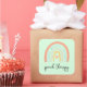 The size is perfect and the design has a softness with the beautiful flowers around the edges. The black lettering on the white background is sharp. It stands out beautifully. I love the Mixture of font styles as it catches the eye.