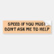 SPEED IF YOU MUST Don't Ask Me To Help Bumper Sticker