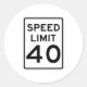 Speed Limit 40 MPH Sign Classic Round Sticker