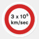 This sticker has a humourous image of a European-style speed limit sign--of the speed of light!
