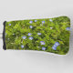 A Putter Cover, With White, Colour, Piping, With a Picture of some Beautiful, Speed Well Creeping Blue Veronica Flowers , growing in the grass on it.