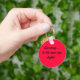 Red keychain with brush script writing