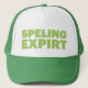 SPELING EXPIRT fun and ironic slogan on trucker hat, green, funny typographic statement, inspired by tv comedy character frank rossitano.