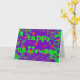 Greetings card with a swirling purple and green background scattered with magical, glowing orange stars and the words 'Happy Halloween' written in bright green. A purple, green and orange customisable design for you to add your own text, images and ideas. The text can easily be changed using the template provided or click the 'Customise It' button to make further alterations. Matching envelope and postage stamp available. Created using digital techniques by Jess Perry.