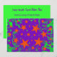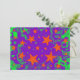 Invitation with a swirling purple and green background scattered with magical, glowing orange and green stars. A purple, green and orange customisable design for you to add your own text, images and ideas. The text can easily be changed using the template provided or click the 'Customise It' button to make further alterations. Matching envelope and postage stamp available. Created using digital techniques by Jess Perry.
