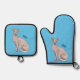 Sphynx cat cartoon illustration oven mitt & pot holder set