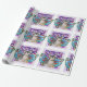 Sphynx Cat Ninja with fairy wings on purple flowers wrapping paper.