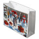 Sphynx Cat Running in Snow with Christmas Hat Large Gift Bag